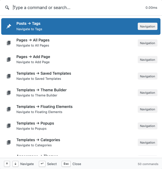 Jump to any Elementor admin page instantly:
