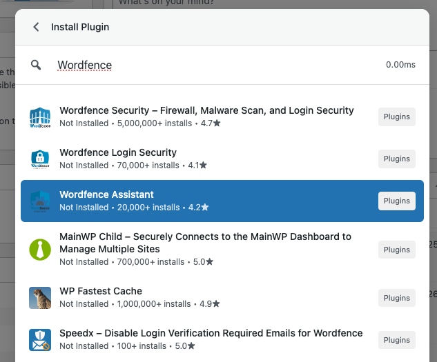 Each result includes the plugin name and basic details so you can identify which one you’re looking for.